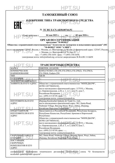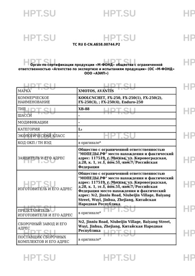| Коммерческое наименование | KOOLCNCHET, FX-250, FX-250(1), FX-250(2), FX-250(3), ; FX-250(4), Enduro-250 |