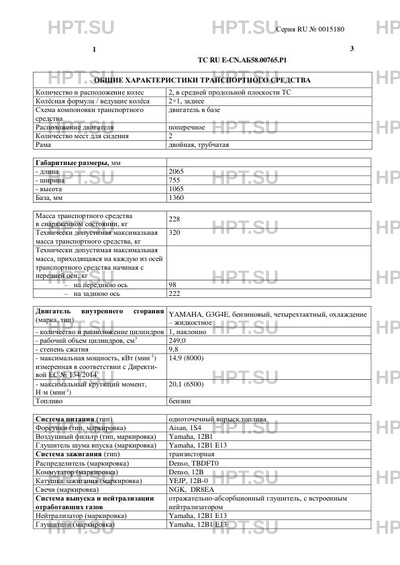 | Заявитель | Общество с ограниченной ответственностью «Ямаха Мотор Си-Ай-Эс». 125167, город Москва, Ленинградский проспект, дом 37А, корпус 4, Российская Федерация. ОГРН: 1057746817061. Тел. 8-495-225-94-81. Факс 8-495-225-94-82. Email hg@yamaha-motor.ru. |