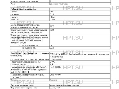 | Предприятие-изготовитель | Chongqing Jianshe Yamaha Motor Co., Ltd. No.1 Huacheng Road B Zone Jiulong Park, Jiulong District Chongqing 400052, Китай. |