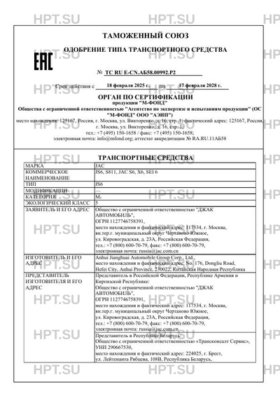 | Номер документа | ТС RU Е-CN.АБ58.00992.Р2 |