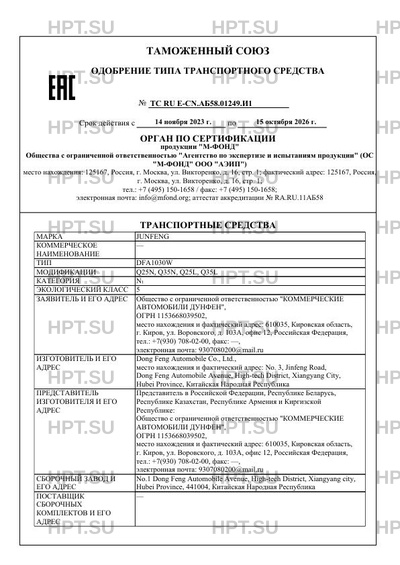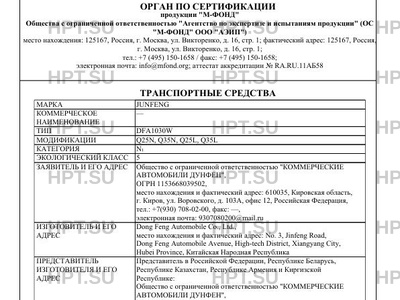 | Предприятие-изготовитель | Dong Feng Automobile Co., Ltd. |