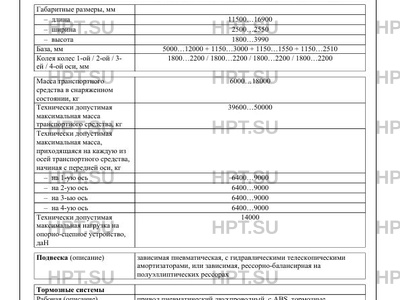 | Оборудование ТС | по заказу: противооткатные упоры, запасное колесо, инструментальный ящик |