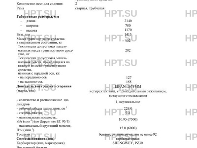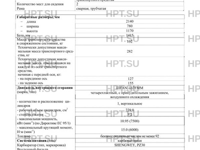 | ДВС | в пределах базы LIFAN, 167FMM четырехтактный, c принудительным зажиганием, воздушного охлаждения |