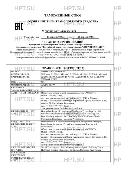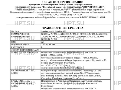 | Марка ТС | MOTOLAND, MOTO1977 |