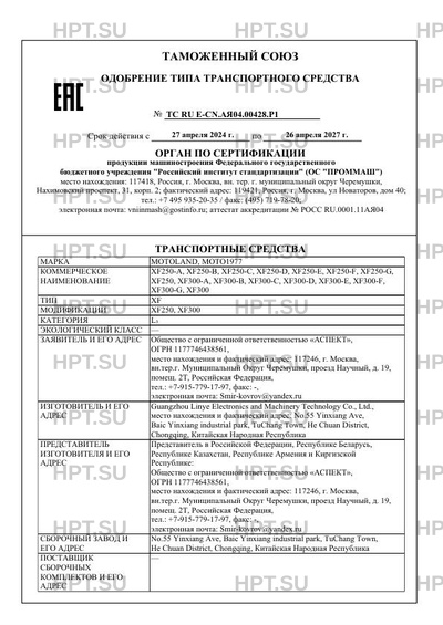 Полное ОТТС ТС RU E-CN.АЯ04.00428.Р1