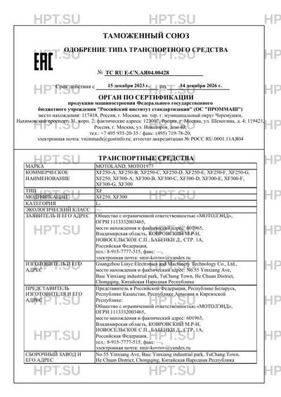 Полное ОТТС ТС RU E-CN.АЯ04.00428