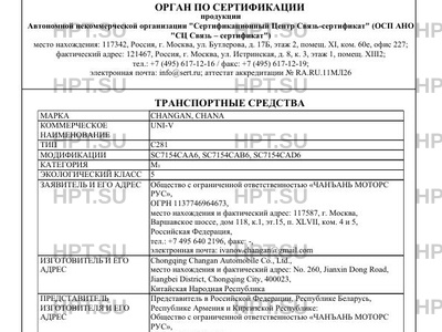 | Заявитель | Общество с ограниченной ответственностью «ЧАНЪАНЬ МОТОРС РУС», ОГРН 1137746964673, место нахождения и фактический адрес: 117587, г. Москва, Варшавское шоссе, дом 118, к.1, эт.15, п. XLVII, ком. 4 и 5, Российская Федерация, тел.: +7 495 640 2196, факс: -, электронная почта: ivanov.changan@gmail.com |