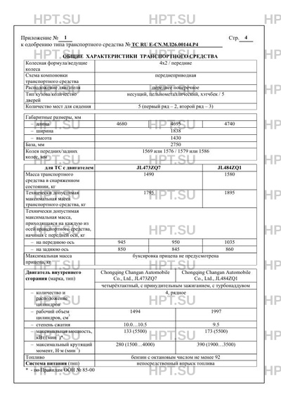 | Предприятие-изготовитель | Chongqing Changan Automobile Co., Ltd, место нахождения и фактический адрес: No.260, Jianxin East Road, Jiangbei District, Chongqing City, Китайская Народная Республика |