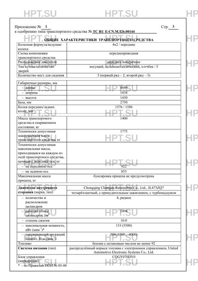 | Предприятие-изготовитель | Chongqing Changan Automobile Co., Ltd., место нахождения и фактический адрес: No. 260, Jianxin Dong Road, Jiangbei District, Chongqing City, 400023, Китайская Народная Республика |