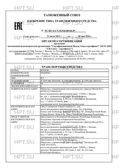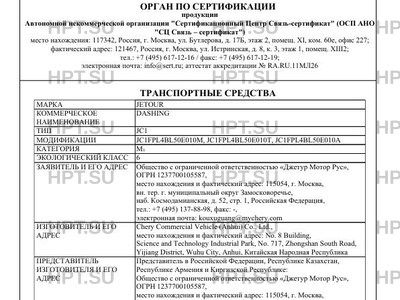 | Заявитель | «Джетур Мотор Рус» |