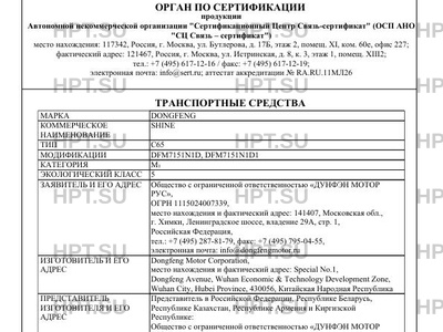 | Заявитель | «ДУНФЭН МОТОР РУС» |
