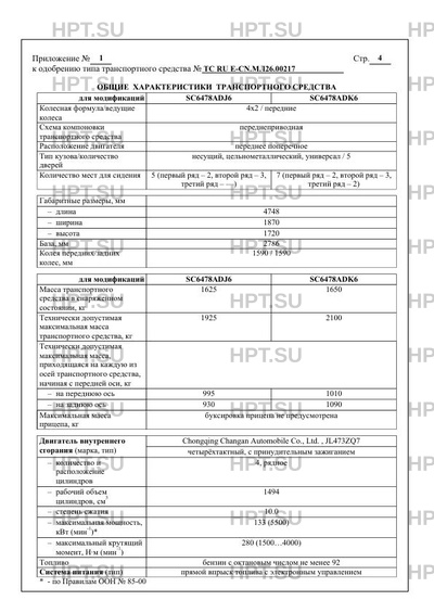 | Марка ТС | CHANGAN, CHANA |