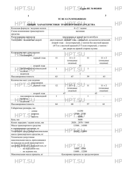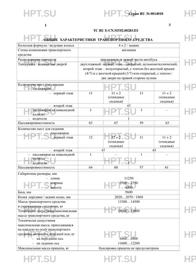 | Дополнительная информация | Транспортные средства относятся к классу I, имеют выделенную площадь для стоящих пассажиров и обеспечивают быструю смену пассажиров (абзац пятый пункта 2.2 приложения № 1 к техническому регламенту Таможенного союза ”О безопасности колесных транспортных средств”). В случае несоответствия параметров транспортных средств значениям, установленным в пунктах 2.1, 2.2 приложения № 5 к техническому регламенту Таможенного союза “О безопасности колесных транспортных средств”, для передвижения транспортных средств по территории государств — членов Таможенного союза необходимо оформление специального разрешения. Мощность, измеренная без установленного на двигатель дополнительного оборудования (“брутто”), для двигателя Cummins, ISD245 51 составляет 180 (2300) кВт (мин-1). |