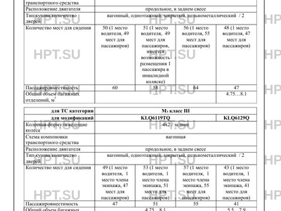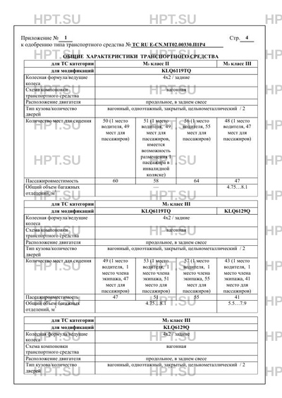 | Категория ТС | KLQ6119ТQ M3 класс II KLQ6129Q, KLQ6119ТQ M3 класс III M3 |