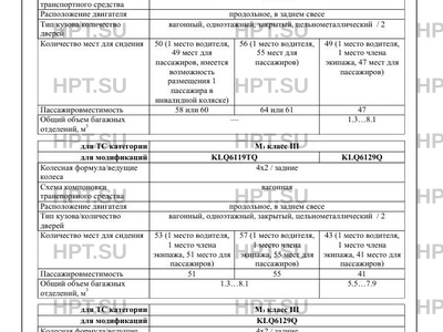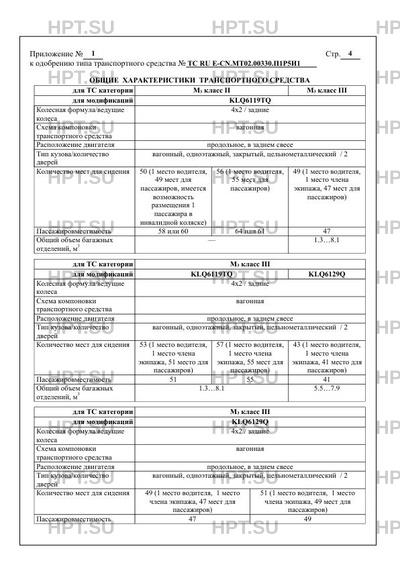 Категория ТС KLQ6119ТQ M3 класс II KLQ6129Q, KLQ6119ТQ M3 класс III M3