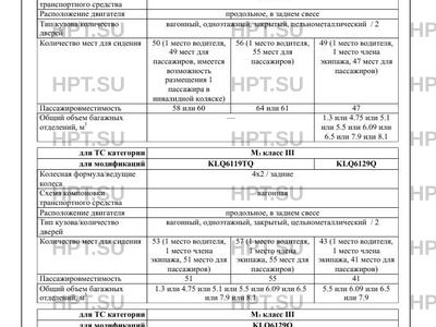 | Категория ТС | M3 KLQ6119ТQ M3 класс II KLQ6129Q, KLQ6119ТQ M3 класс III |