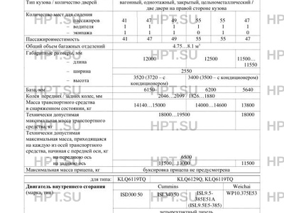 | Дополнительная информация | Транспортные средства являются автобусами класса III. В случае несоответствия параметров транспортных средств значениям, установленным в пунктах 2.1, 2.2 приложения № 5 к техническому регламенту Таможенного союза “О безопасности колесных транспортных средств”, для передвижения транспортных средств по территории государств — членов Таможенного союза необходимо оформление специального разрешения. Мощность, измеренная без установленного на двигатель дополнительного оборудования (“брутто”), составляет: для двигателя Cummins, ISD300 50 – 221 (2500) кВт (мин-1), для двигателя Cummins, ISL340 50 – 250 (2100) кВт (мин-1), для двигателя Cummins, ISL9.5-385Е51А (ISL9.5Е5-385) – 282 (1900) кВт (мин-1), для двигателя Weichai, WP10.375E53 – 276 (1900) кВт (мин-1). |