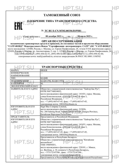 | Представитель изготовителя | Общество с ограниченной ответственностью "Хайгер Бас Рус". 141431, город Москва, улица Комсомольская, 5, строение 2, Российская Федерация. ОГРН: 5087746034052. Тел. +7-495-665-67-45. Факс +7-495-665-67-45. |