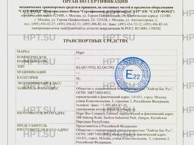 | Марка ТС | Higer |
