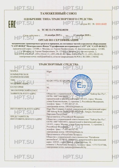 | Номер документа | ТС RU E CN.МТ02.00330 |