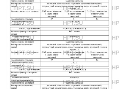 | Тип ТС | В случае превышения параметров, установленных приложением № 5 к техническому регламенту Таможенного союза "О безопасности колесных транспортных средств", для передвижения транспортных средств по территории государств - членов Таможенного союза необходимо оформление специального разрешения. Мощность, измеренная без установленного на двигатель дополнительного оборудования (“брутто”), составляет: для двигателя Cummins, ISL 360 50 – 265 (2100) кВт (об/мин), для двигателя Yuchai, YC6MK375N-50 – 276 (2100) кВт (об/мин), для двигателя Weichai, WP10.375E53 – 276 (1900) кВт (об/мин). Транспортные средства относятся к классу III, предназначены для перевозки исключительно сидящих пассажиров (абзац пятый пункта 2.2 приложения № 1 к техническому регламенту Таможенного союза «О безопасности колесных транспортных средств») |