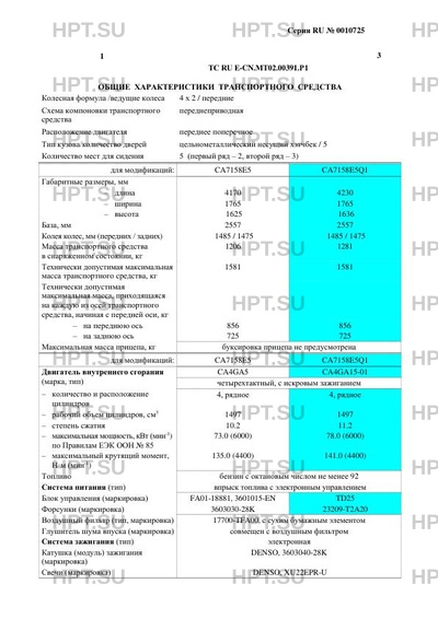 | Тип ТС | CA7158E4 |