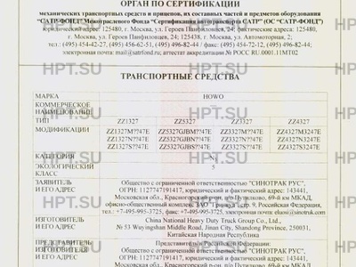 | Предприятие-изготовитель | China National Heavy Duty Truck Group Co., Ltd., № 53 Wuyingshan Middle Road, Jinan City, Shandong Province, 250031, Китайская Народная Республика |