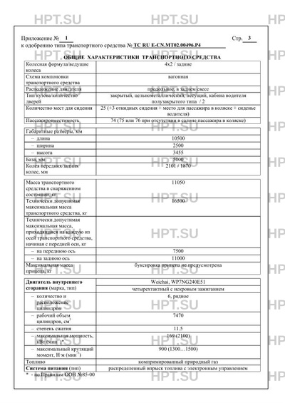 | ДВС | Weichai, WP7NG240E51 четырехтактный с искровым зажиганием - количество и расположение цилиндров 6, рядное |