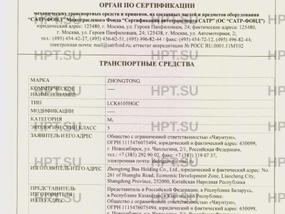 Тип ТС Транспортные средства ZHONGTONG типа LCK6105HGC относятся к категории M3 класса…