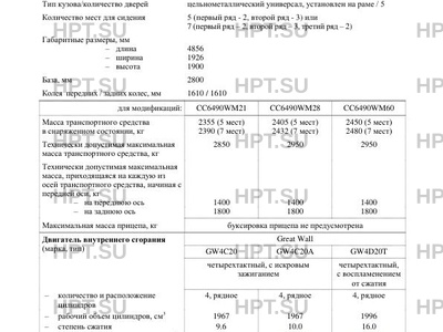 | ДВС | Great Wall GW4C20 GW4C20A GW4D20T четырехтактный, с искровым зажиганием четырехтактный, с воспламенением от сжатия |