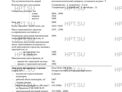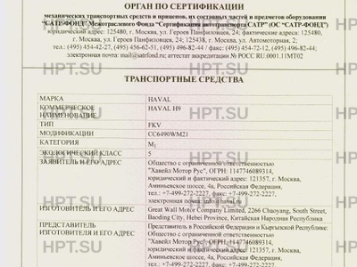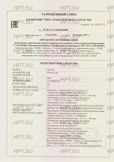 Заявитель Общество с ограниченной ответственностью "Хавейл Мотор Рус". 121357, г. Москва, Аминьевское шоссе, д. 4а, Российская Федерация. ОГРН: 1147746089314. Тел. +7-499-272-2227. Факс +7-499-272-2227. Email rusprodtech@gwm.cn.