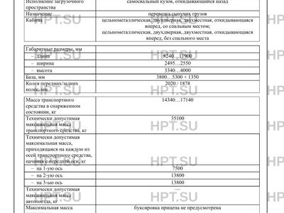 | Исполнение загрузочного пространства | самосвальный кузов, откидывающийся назад |