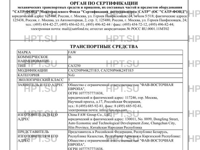 | Заявитель | Общество с ограниченной ответственностью "ФАВ-ВОСТОЧНАЯ ЕВРОПА", ОГРН 1077757771838, юридический и фактический адрес: 117246, гор. Москва, Научный проезд, д.17, Российская Федерация, тел.: 8 (495) 685-92-81, факс: 8 (495) 685-92-81, электронная почта: info@faw-rus.com |