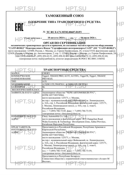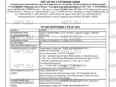 | Коммерческое наименование | Tiggo2, TIGGO2 PRO, A13T, A13TFL, Tiggo3X, Tiggo1, TIGGO2 PRO MAX |