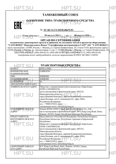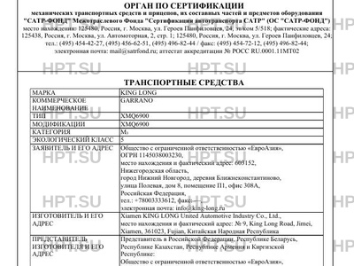 Предприятие-изготовитель Xiamen KING LONG United Automotive Industry Co., Ltd.