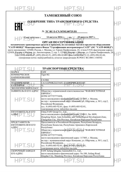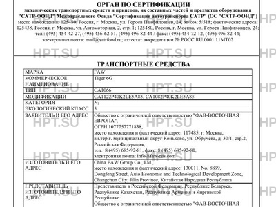 Заявитель Общество с ограниченной ответственностью "ФАВ-ВОСТОЧНАЯ ЕВРОПА", ОГРН 1077757771838, место нахождения и фактический адрес: 117485, г. Москва, вн.тер.г. муниципальный округ Коньково, ул. Обручева, д. 30/1, стр.2, Российская Федерация, тел.: 8 (495) 685-92-81, факс: 8 (495) 685-92-81, электронная почта: info@faw-rus.com