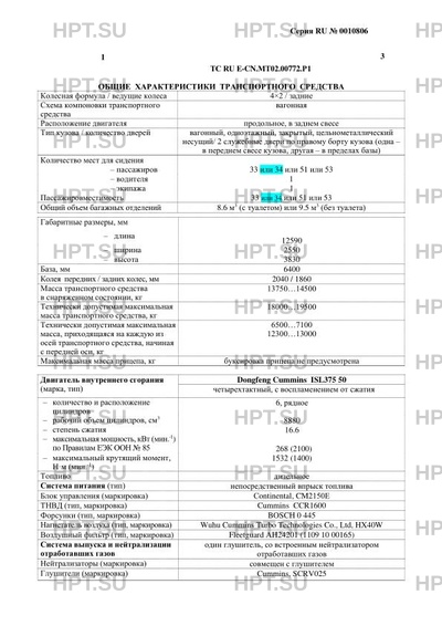 Кол-во мест для сидения (M2, M3, L) пассажиров 33 или 34 или 51 или 53 - водителя 1 - экипажа 1