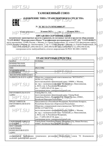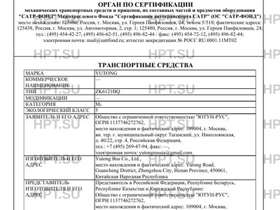 | Предприятие-изготовитель | Yutong Bus Co., Ltd. |