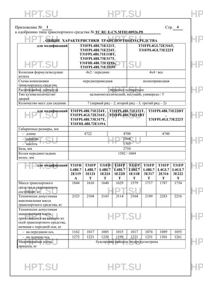 Экологический класс 5, 6 T31FPL4BL71E224T, T31FPL4BL71E22DT 5 T1D, NEW TIGGO8, TIGGO8 PRO, TIGGO8 S…