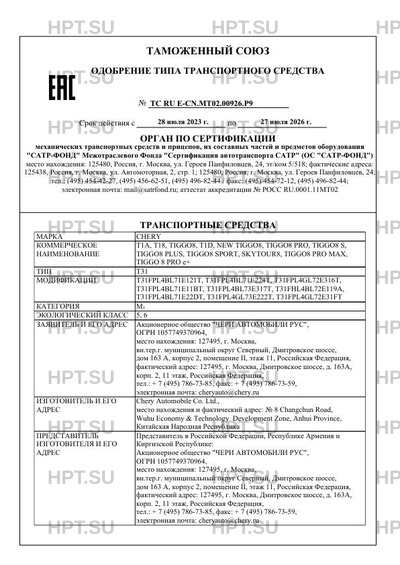 | Представитель изготовителя | Представитель в Российской Федерации, Республике Армения и Киргизской Республике: Акционерное общество "ЧЕРИ АВТОМОБИЛИ РУС", ОГРН 1057749370964, место нахождения: 127495, г. Москва, вн.тер.г. муниципальный округ Cеверный, Дмитровское шоссе, дом 163 А, корпус 2, помещение II, этаж 11, Российская Федерация, фактический адрес: 127495, г. Москва, Дмитровское шоссе, д. 163А, корп. 2, 11 этаж, Российская Федерация, тел.: + 7 (495) 786-73-85, факс: + 7 (495) 786-73-59, электронная почта: cheryauto@chery.ru Представитель в Республике Беларусь: Общество с ограниченной ответственностью "Автоцентр на МКАД", УНП 193126788, место нахождения и фактический адрес: 220138, г. Минск, ул. Ваупшасова, 55, Автосалон, (2 этаж), Республика Беларусь, тел.: +375 17 250 40 00, факс: +375 17 250 40 00, электронная почта: ka@chinamobil.by Представитель в Республике Казахстан: Товарищество с ограниченной ответственностью "First Motor Group", БИН 210640019937, место нахождения и фактический адрес: 050060, г. Алматы, Бостандыкский район, Проспект Аль-Фараби, дом 107, Республика Казахстан, тел.: +7 701 722 96 17, факс: -, электронная почта: n.shamgonov@1motorgroup.kz |