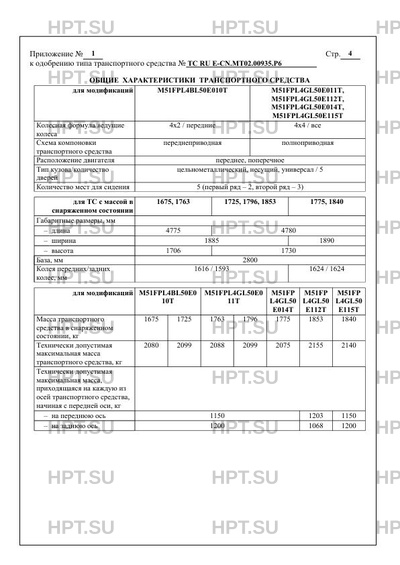 | Экологический класс | 5, 6 M51FPL4BL50E010T, M51FPL4GL50E011T 5 CHERYEXEED, EXEED M51 M51FPL4GL50E112… |