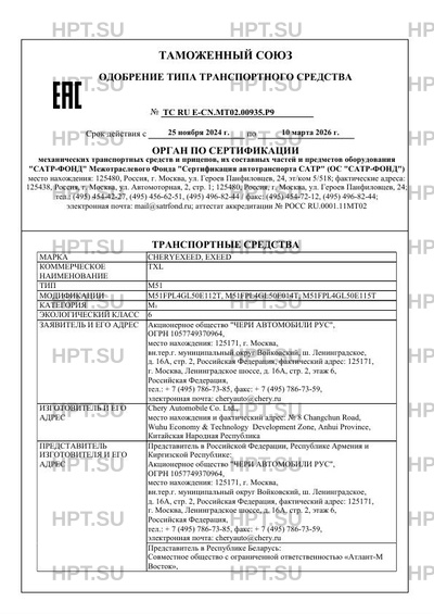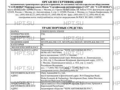 | Марка ТС | CHERYEXEED, EXEED |