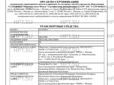 | Марка ТС | YUTONG |