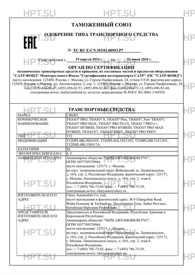 | Заявитель | Акционерное общество "ЧЕРИ АВТОМОБИЛИ РУС", ОГРН 1057749370964, место нахождения: 125171, г. Москва, вн.тер.г. муниципальный округ Войковский, ш. Ленинградское, д. 16А, стр. 2, Российская Федерация, фактический адрес: 125171, г. Москва, Ленинградское шоссе, д. 16А, стр. 2, этаж 6, Российская Федерация, тел.: + 7 (495) 786-73-85, факс: + 7 (495) 786-73-59, электронная почта: cheryauto@chery.ru |