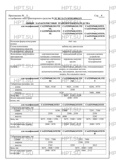 | Тип ТС | СА3252 6x6 |
