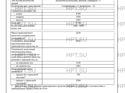 | Оборудование ТС | устройство вызова экстренных оперативных служб; совмещенная система вентиляции, отопления и кондиционирования (система управления климатом); система мониторинга давления воздуха в шинах (TPMS); рейлинги на крыше; боковые подножки; передние и боковые подушки безопасности водителя и пассажира; обогрев ветрового стекла и форсунок омывателя ветрового стекла по заказу: иммобилайзер; противоугонная система; поперечные рейлинги на крыше (поперечная балка багажной полки на крыше); подготовка под сцепное устройство; ограничитель максимальной скорости; шторки безопасности |