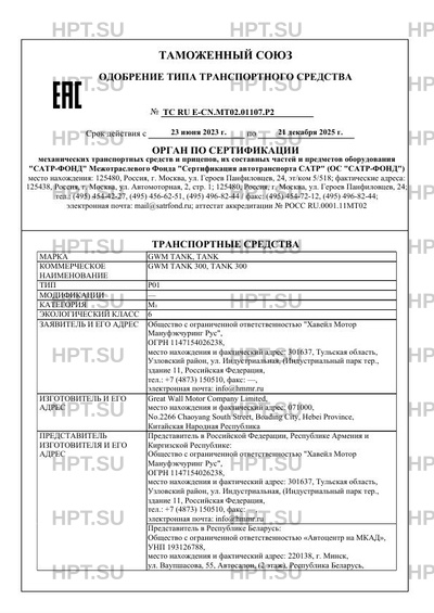 | Марка ТС | GWM TANK, TANK |