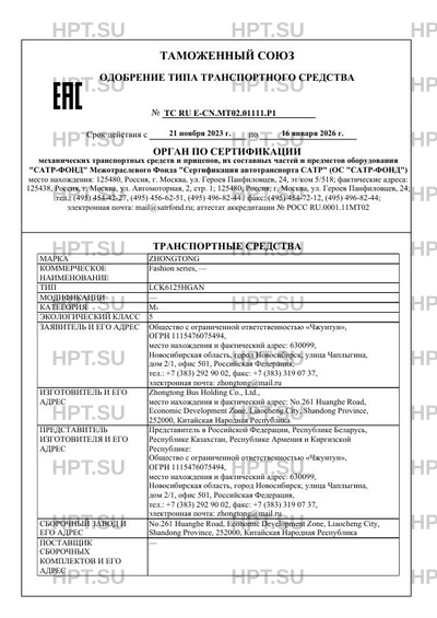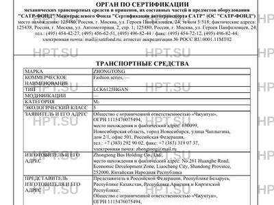| Марка ТС | ZHONGTONG |