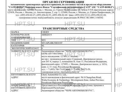 | Заявитель | "ЧЕРИ АВТОМОБИЛИ РУС" |