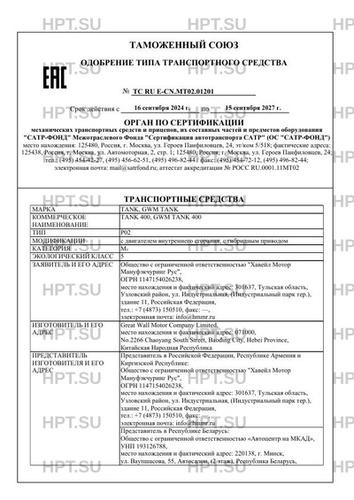| Марка ТС | TANK, GWM TANK |